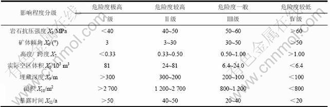 表4 采空区危险性评价的定量指标分级标准