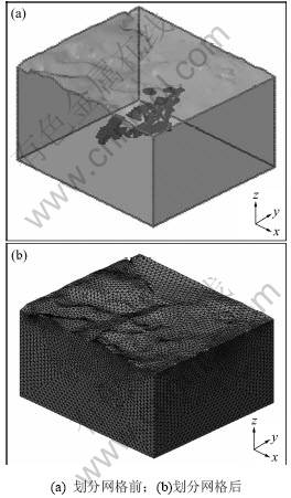 单元为四面体单元,单元大小是渐变式的,按照从采空区边界至远离空区边界的围岩处逐渐放大的方式来划分单元。在给定模型边界条件时,只考虑边界约束,分别对模型的X轴的前、后2个面和Y轴的前、后2个面及底面进行约束。