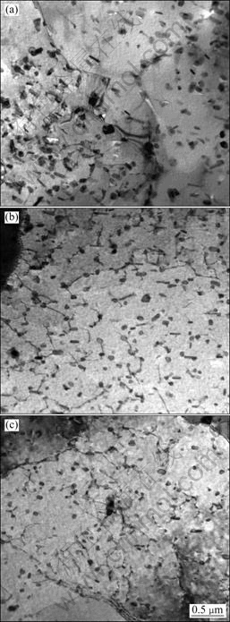 Fig. 4 TEM images showing microstructures of 7A09 alloy cooled at 5 ℃/min (a), 10 ℃/min (b), and 50 ℃/min (c)