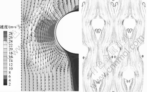 Fig.3 Local velocity vector and flow pattern of heat pipe in heat exchanger