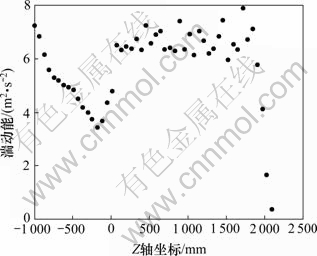 Fig.4 Turbulivity in shell side along Z-axis (X=110 mm, Y=1 230 mm)