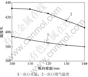 图9 纵向管距变化时,热管出口烟温与出口水温变化规律