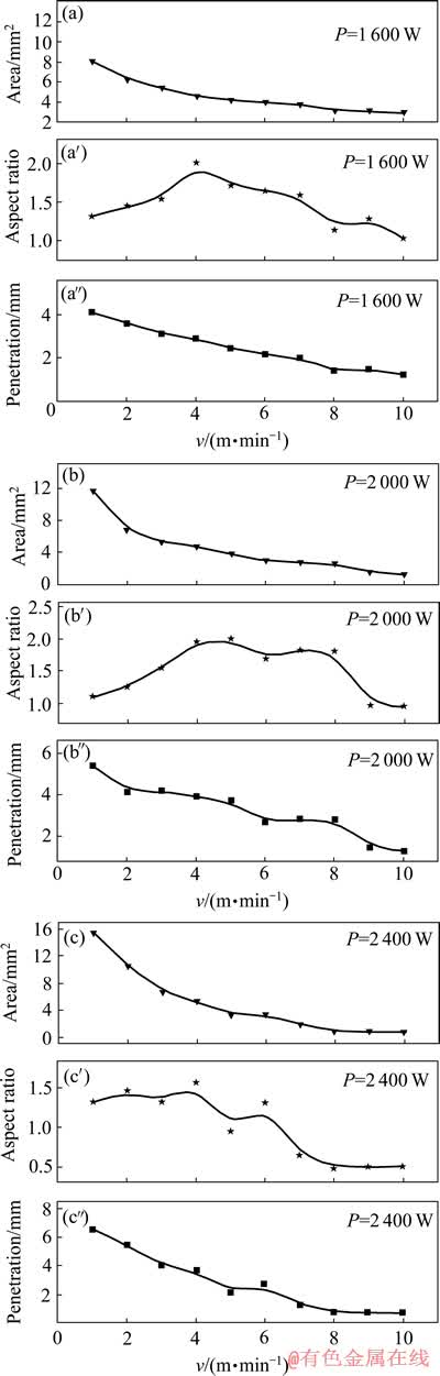 图4 不同功率下焊接速度对熔池几何尺寸的影响