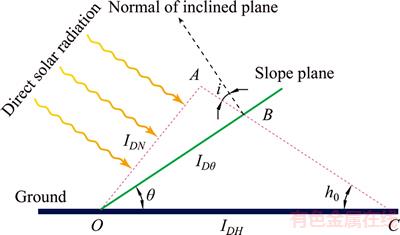 Figure 3 Calculation diagram of intensity of solar radiation on a slope surface