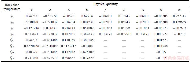 Table 3 Exponential coefficients of various physical quantities of rock face temperature for four points
