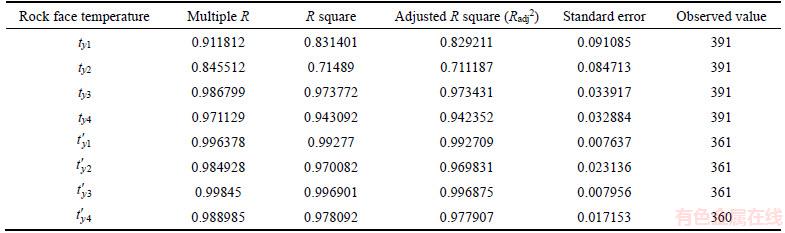 The data of point No. 1 were analyzed by the multivariate non-linear regression method, and an empirical formula indicating the rock face temperature was obtained