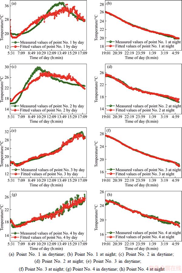 Figure 6 Contrast of measured temperatures and fitted temperatures for each measuring point: