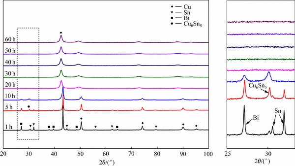 2.1 球磨对Cu-Sn-Bi合金粉末组织结构的影响