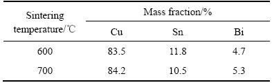 表4 经不同温度两次烧结后Cu-10%Sn-5%Bi合金的能谱分析