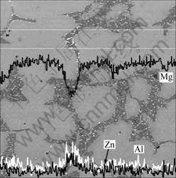 Fig.3 EPMA line analysis of Mg-Li-Al-Zn alloy