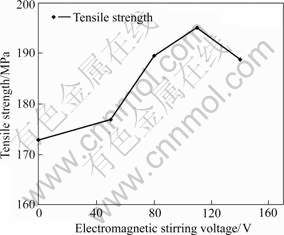 magnetic stirring) to 195 MPa (with 110 V electro- magnetic stirring), and the elongation is raised from 10.65% to 25.75%.