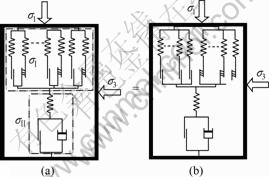 Generally, rock mainly shows the mechanical behaviors including elasticity, viscosity, plasticity and brittleness undergoing varied loads. There are four mechanics elements to be used frequently, i.e. elastic body (spring), plastic body (gliding slice), viscous body (Newton body) and brittle body (cementation bar), which denote the above four mechanical behaviors of rock, respectively[5-9, 12, 14-16]. And some complex mechanics actions can be simulated by the combination of the four main mechanics elements.