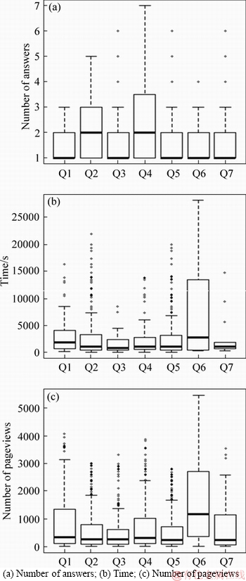 In addition, the data analysis results of manual inspection are shown in Figure 7, where the x-axis is the Ind of the categories based on Table 2.Figure 7(a) shows the number of answers that each category of questions received. The y-axis is the number of answers that the questions received. Figure 7(b) shows the time of solving the question, where the y-axis is time. Figure 7(c) shows the pageviews of the questions, where the y-axis is the number of views that the question acquired.