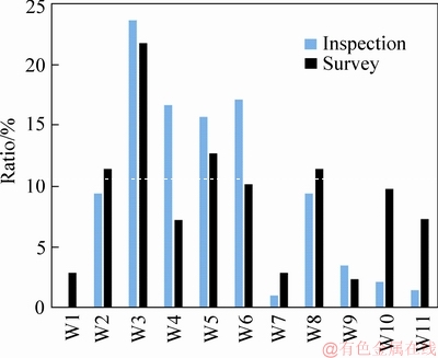 Figure 8 shows the distributions of API documentation problems from the result of manual inspection and online survey based on Table 3. The results of manual inspection and online survey show a similar distribution. Because index W1 is only for survey purpose, there is no data in the result of manual inspection.