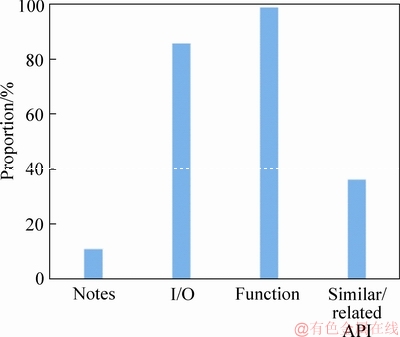 To figure out what the API developers mainly concern about, we summarize a taxonomy scheme of documentation by manual inspection as introduced in Section 3.2. The results are shown in Figure 9, which indicates the proportion of API having the following information (notes, I/O, functional description and similar/related API) in official documentation.