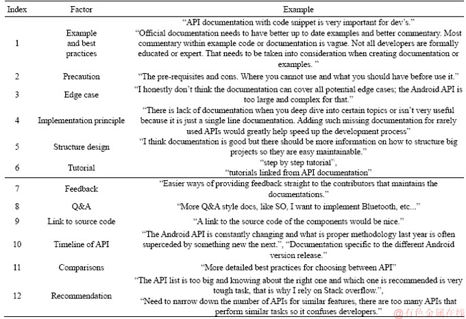 Table 3 Taxonomy scheme about shortcomings of API documentation