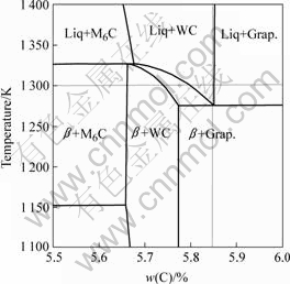 图1 Co-W-C系相图6%Co计算垂直截面[1]