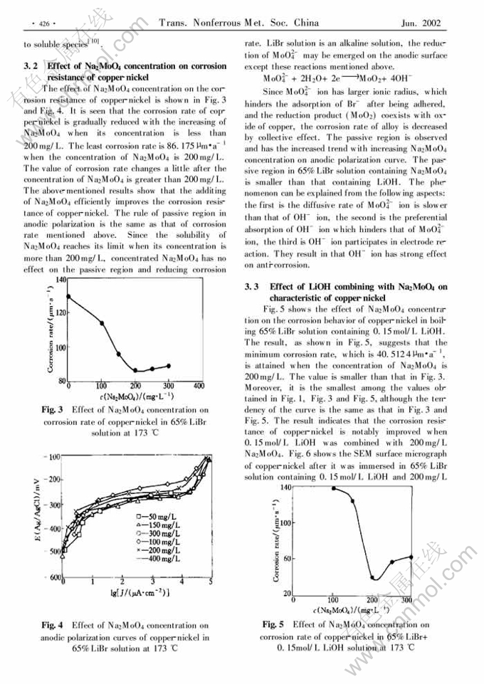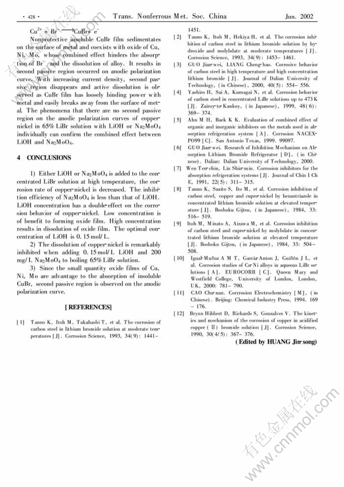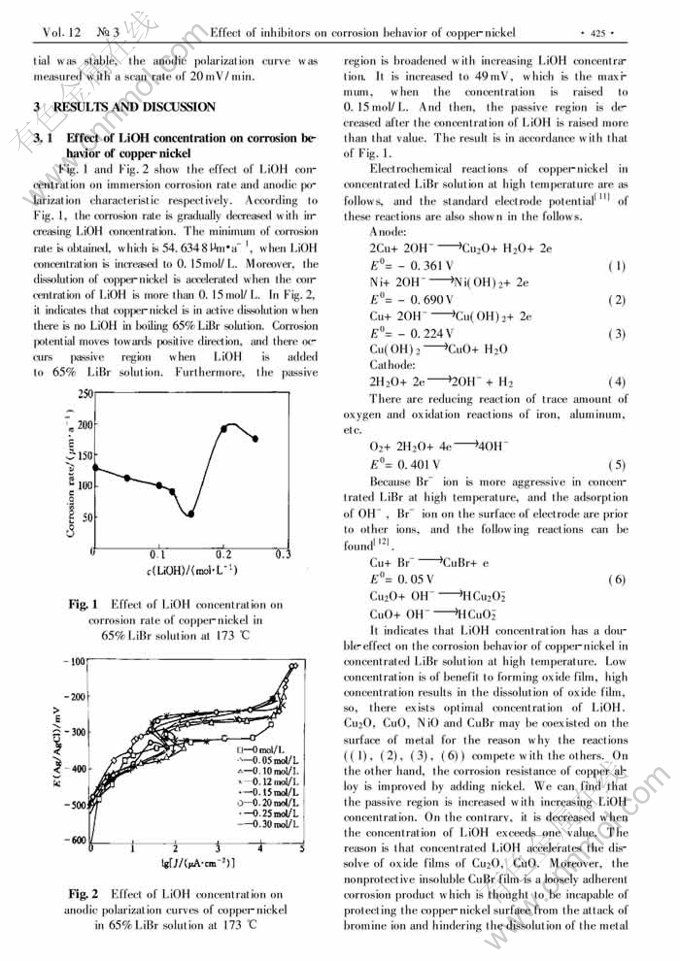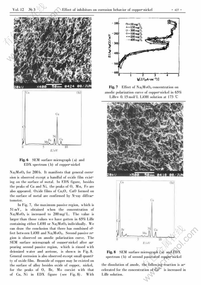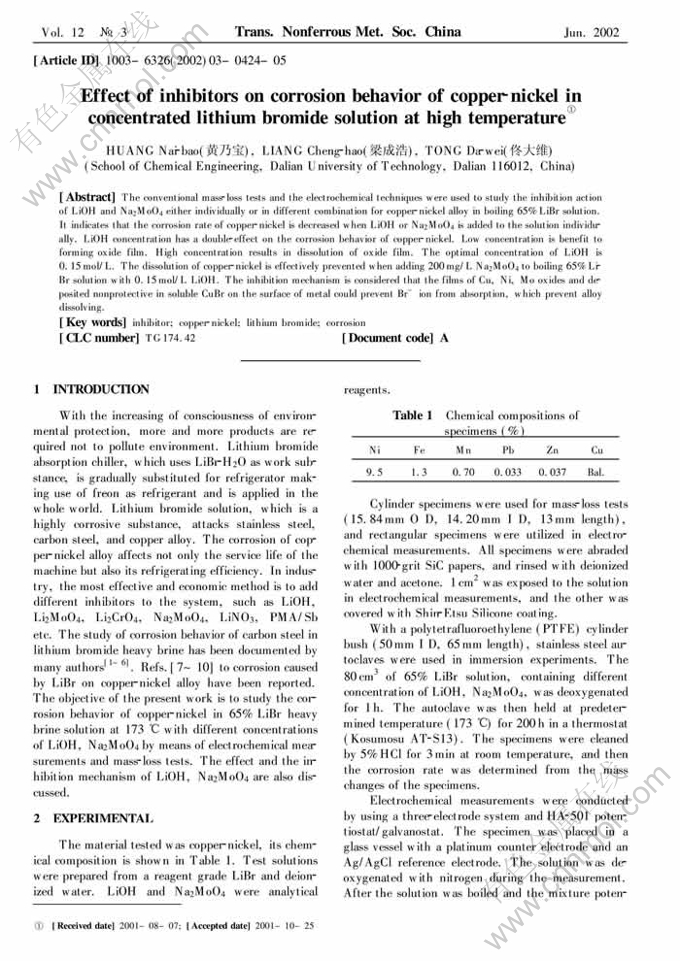 Key words:inhibitor; copper-nickel; lithium bromide; corrosion