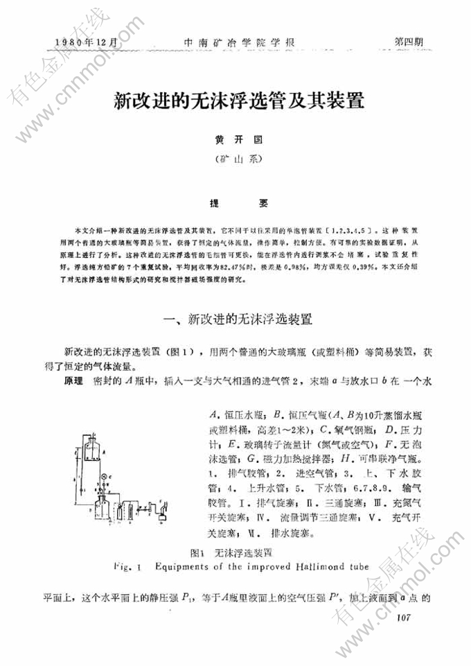 关键词:磁场强度; 单泡管; 方铅矿; 可更换; 浮选装置; 充气浮选; 调浆; 毛细管; 充气量; 气体流量