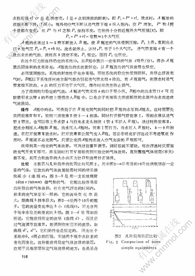 摘 要:本文介绍一种新改进的无沫浮选管及其装置,它不同于以往采用的单泡管装置[1.2.3.4.5]。这种装置用两个普通的大玻璃瓶等简易装置,获得了恒定的气体流量,操作简单,控制方便。有可靠的实验数据证明,从原理上进行了分析。这种改进的无沫浮选管的毛细管可更换,能在浮选管内进行调浆不会堵塞,试验重复性好。浮选纯方铅矿的7个重复试验,平均回收率为82.47%时,极差是0.98%,均方误差仅0.39%。本文还介绍了对无沫浮选管结构形式的研究和搅拌器磁场强度的研究。