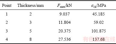 采用万能拉伸试验机对不同厚度的锡基巴氏合金层结合力进行测试,并按照式(2)进行结合强度计算: