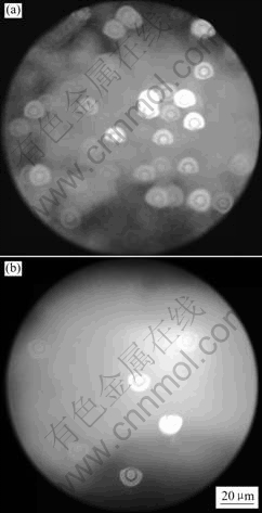 Fig.1 Fluorescence microscope images of bacteria adherence on different substrates: (a) Ti6Al4V alloy; (b) Mo-N modified layer surface
