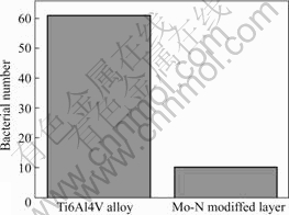 Fig.2 Number of bacteria adhered on Ti6Al4V alloy and Mo-N modified layer