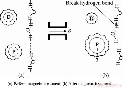 图4 磁场梯度力影响氢键缔合程度和离子水合作用的理论模型