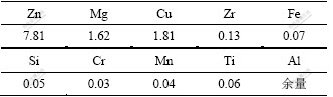表1 试验所用Al-Zn-Mg-Cu合金的化学成分