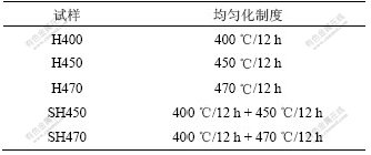 均匀化制度:试样H400,400 ℃/12 h;试样H470,470 ℃/12 h