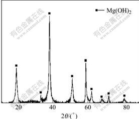 After 170 h, a white substance was observed on the surface of all samples. The composition of the substance was analyzed by a D/MAX-1200 type diffractometer. In organism environment, the corrosion of magnesium and its alloys is the process mainly caused by the reaction: Mg+2H2O→Mg(OH)2+H2↑, thus the solid substance of the main corrosion product is Mg(OH)2 (Fig.5).