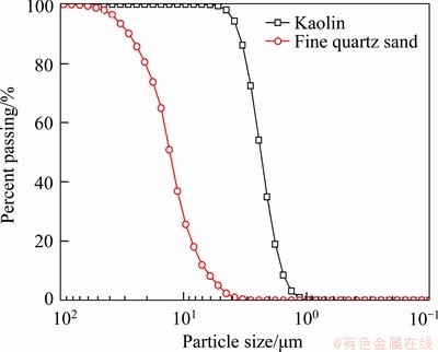 Figure 1 Particle size distribution curves of kaolin and fine quartz sand