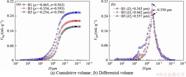 Figure 6 MIP test results of three specimens with different dry densities (B1-1.70 g/cm3; B3-1.60 g/cm3; B5-1.50 g/cm3):