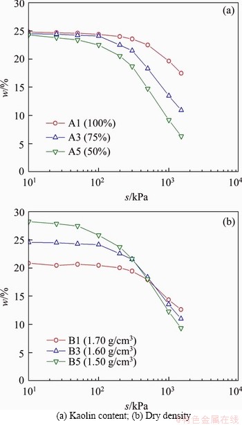 Figure 11 Water retention curves of silty clay specimens affected by: