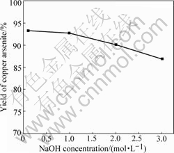 The impact of NaOH concentration on the yield of copper arsenite is shown in Fig.3. The conditions are n(OH-)/n(As)=2?1 and other conditions fixed.