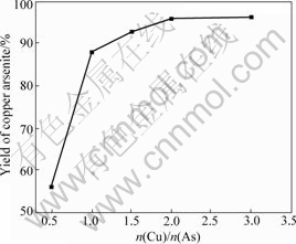 Fig.4 Impact of n(Cu)/n(As) on yield of copper arsenite