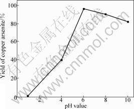 Fig.5 Impact of pH value on yield of copper arsenite