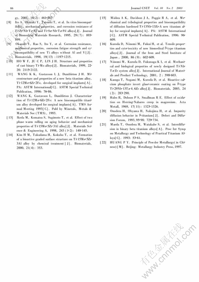 Key words:biomedical alloy; Ti-Mo alloy; powder metallurgy
