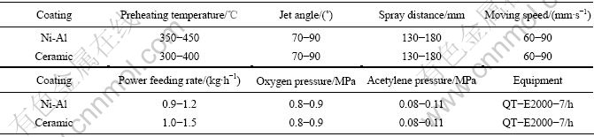 表1 紫铜基体表面的依次喷涂Ni-Al涂层和复合陶瓷涂层的热喷涂工艺参数