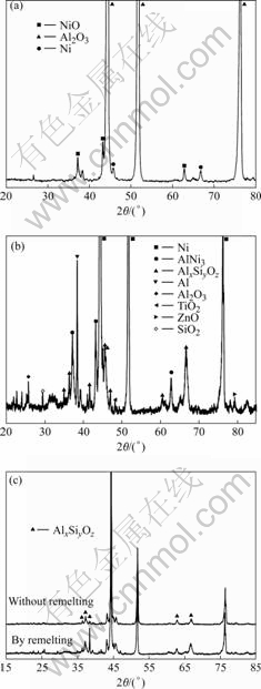 Fig.2 XRD patterns of coatings: (a) Ni-Al coating; (b) Composite ceramic coating; (c) Melting coating