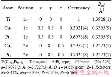 Table 3 Crystal data and refined parameters for Ti(Cu0.3Pt0.7)3 phase