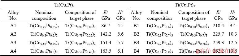 Table 5 Measured hardness (H) and elastic modulus (E) of Ti(Cu,Pt)2 and Ti(Cu,Pt)3 phases