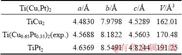 Table 6 Calculated lattice parameters, unit-cell volumes of terminal phases TiCu2 and TiPt2 and experimental value of Ti(Cu0.65Pt0.35)2