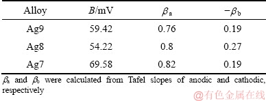 Table 3 Stern-Geary coefficient (B) and symmetry factor (β) calculated from measured Tafel slopes