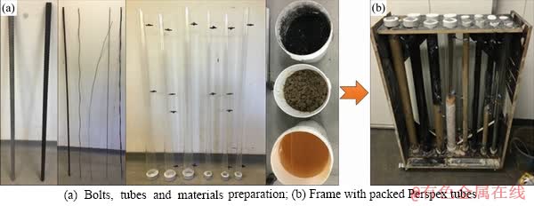 Figure 1 Experiment preparation and holding frame with packed Perspex tubes: