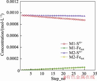 Figure 6 Trend of sulphate and iron concentrations in models M1 and M2