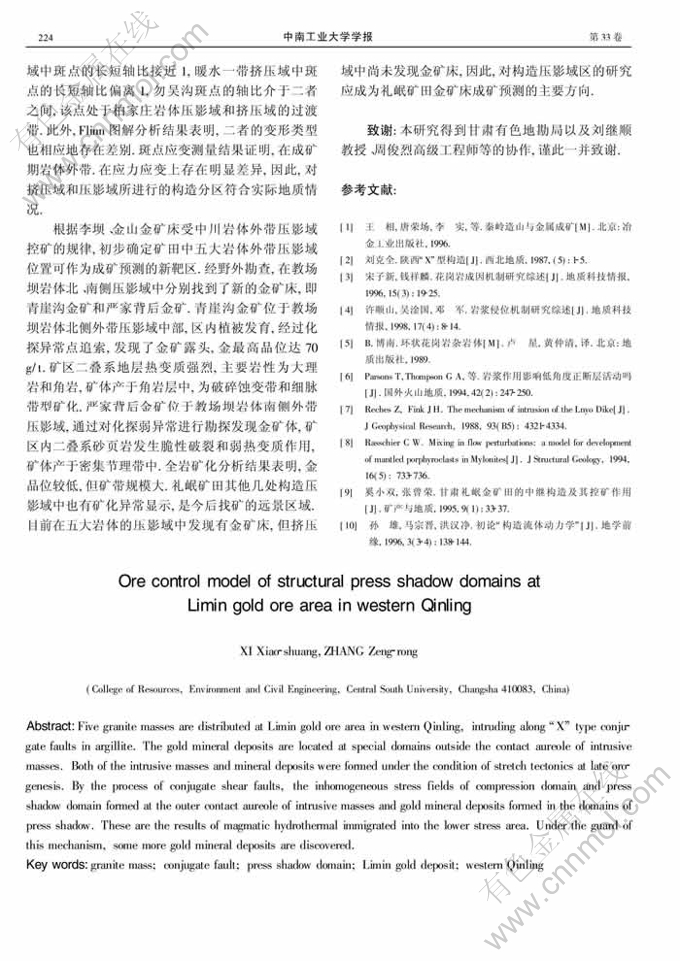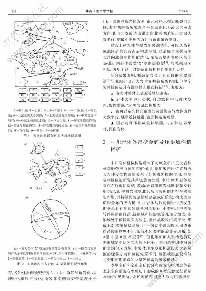 关键词:花岗岩体;共轭断裂;构造压影域;西秦岭礼岷矿田