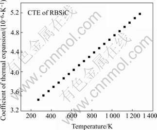 The CTE measurement results are shown in Fig.3. Note that the expansion nearly linearly increases with the increase of temperature over the temperature range tested. This means the expansion of RBSiC is symmetrical. No turning in the curve means that no phase transformation occurs.