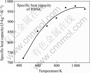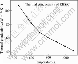 where r is the density and cp is the specific heat capacity of the material. Assume the density of RBSiC changes little over the temperature range 444 K to 1 096 K. Eqn.(1) can be used to calculate thermal conductivity when values of r, a and cp are available.