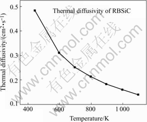 The thermal diffusivity results are shown in Fig.5. It can be seen that the thermal diffusivity decreases as the temperature increases from 444 K to 1 096 K. This means the increase of temperature leads to weaken the ability of diffusivity of heat inside material.